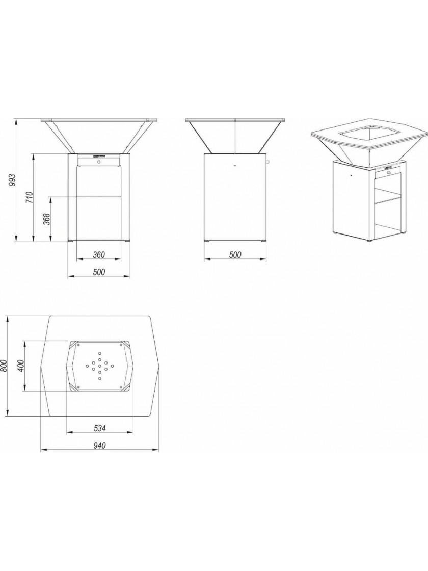Відкрита основа барбекю з полицею - це зручне місце для зберігання дров і приладдя для гриля, а висувний ящик можна швидко і легко звільнити від накопиченої золи. Додайте в комплект решітку, і ви зможете смажити не тільки на плиті, але і прямо над вогнем. Кришка дозволить додатково захистити поверхню від впливу погодних умов.