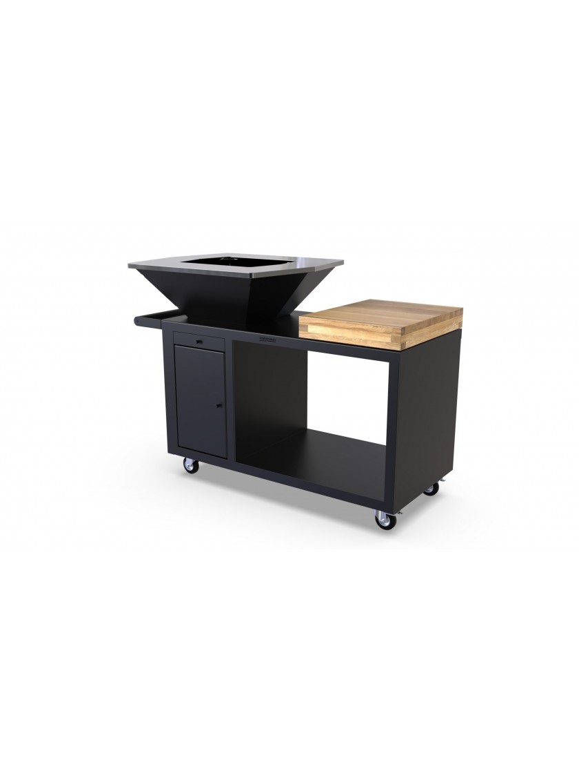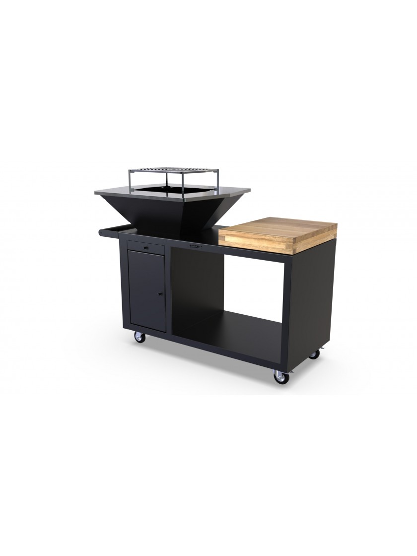 Створюйте смачні страви на ходу, використовуючи спеціально підготовлену дерев'яну поверхню. На полицях вам буде зручніше зберігати приладдя для грилю, столові прибори та маринади. Під вогнищем є висувний ящик для очищення від золи. Конструкцію дуже легко переміщати у зручне для Вас місце завдяки вбудованим коліщаткам.