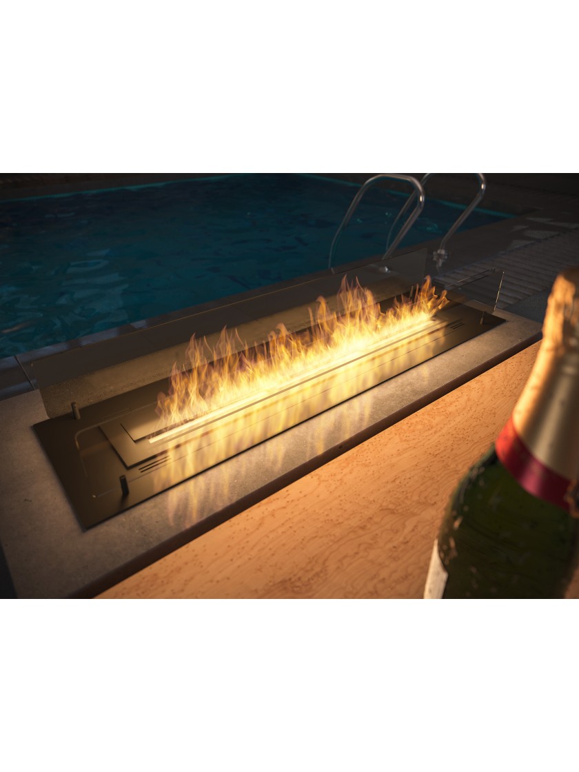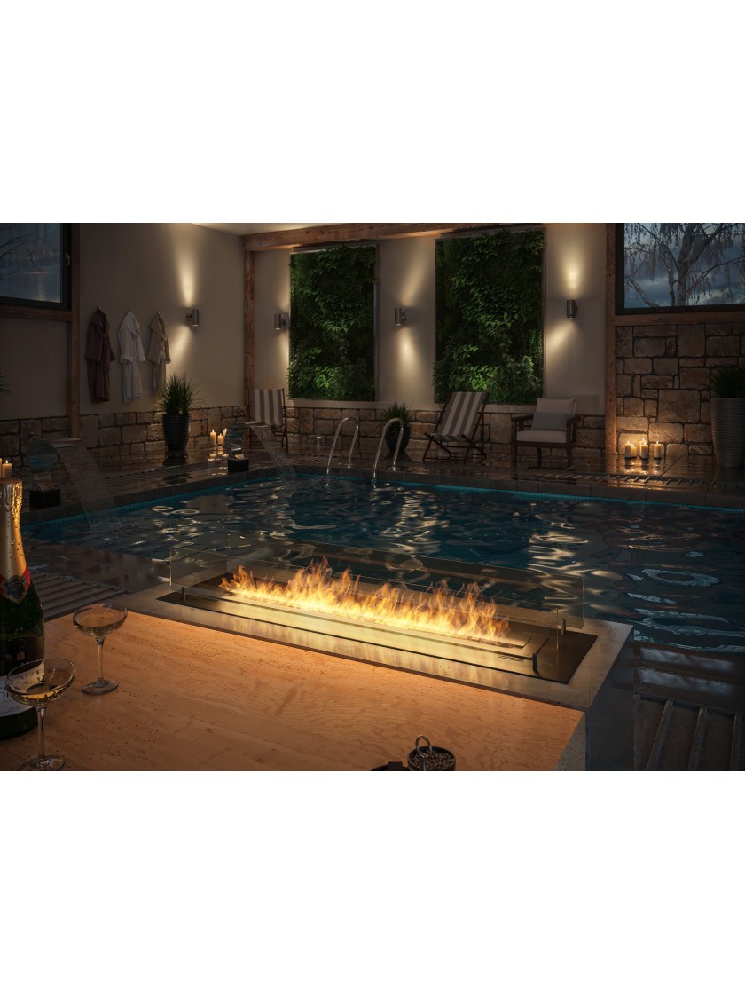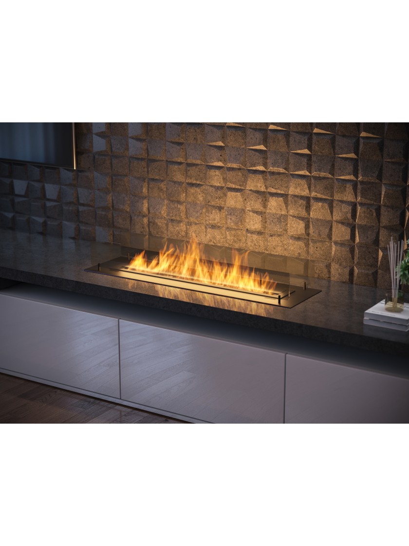 Модель INSERT 1200 - це камін, призначений для установки в підготовлену нішу. Ми пропонуємо 600 мм вогнища, вбудованого в спеціальний кожух, який разом зі склом і красивою обробкою утворює цілісне, естетичне ціле. Шайба пальника в першу чергу відповідає за поглинання тепла пальника, не дозволяючи йому нагріватися вище рівня землі. Крім того, камера корпусу під пальником призначена для зниження тиску, який може виникнути при розливі палива. Це система, яка забезпечує безпечне використання каміна. Завдяки вищезазначеним рішенням можна вбудувати вогонь навіть у меблеву дошку (виключаючи фольговані панелі). Найвища якість нержавіючої сталі забезпечує якість та довговічність.