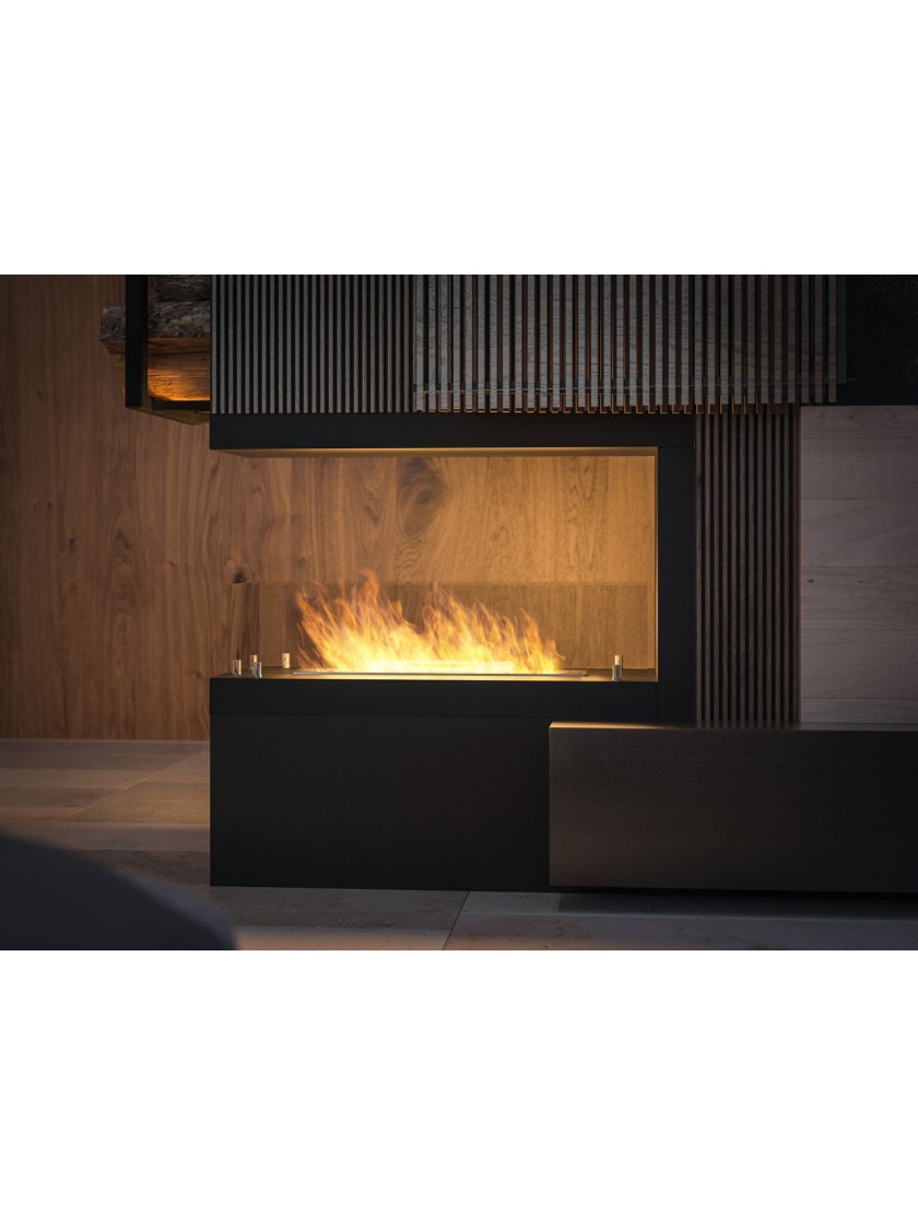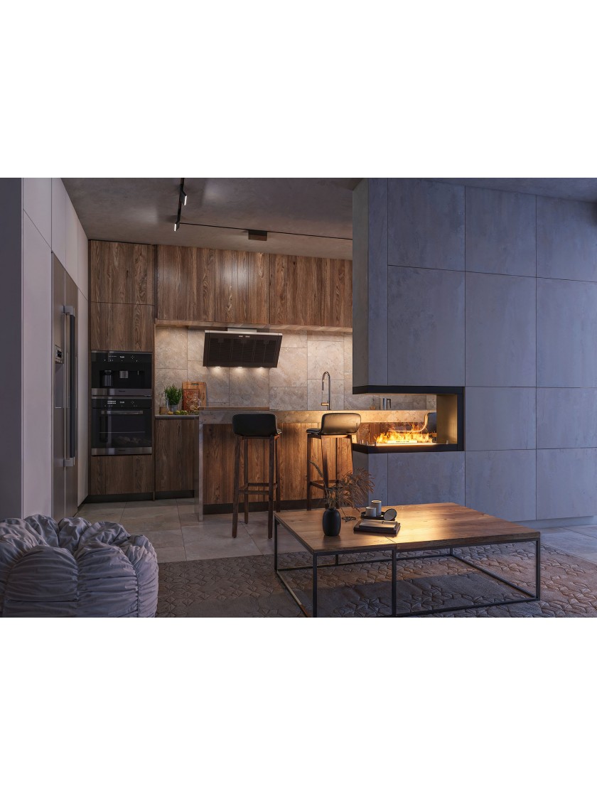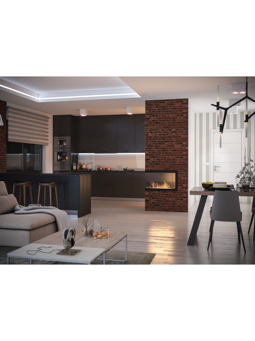 Модель INSIDE U 800 - це камін, який потрібно встановити в підготовлену нішу. Каркас каміна обладнаний вентиляційною системою, яка запобігає утворенню тиску під пальником у разі переливу палива. Каркас каміна також має вбудовану ізоляцію, що дозволяє його безпечно монтувати, наприклад, у конструкціях з МДФ або картону з гіпсу. Камін може бути красивою і ефективною ланкою між двома приміщеннями.
