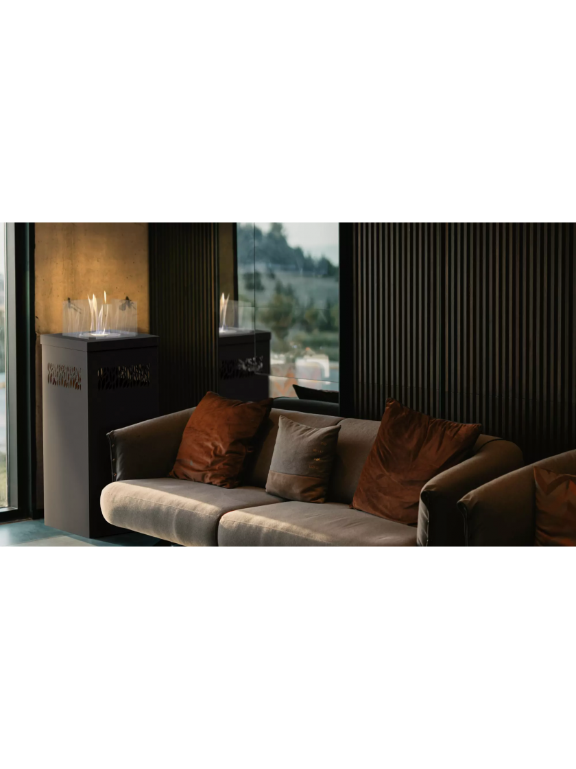 Біокамін, створений на основі садових обігрівачів, який завдяки своїй стійкій основі ідеально підходить як для внутрішнього, так і зовнішнього використання. Подібні пристрої є відмінним рішенням для заміни традиційного каміна, дров'яного або газового обігрівача. Унікальна конструкція впишеться як в сучасний, так і в класичний інтер'єр. Завдяки впровадженим рішенням «танцюючого полум'я», ним можна милуватися з усіх боків.