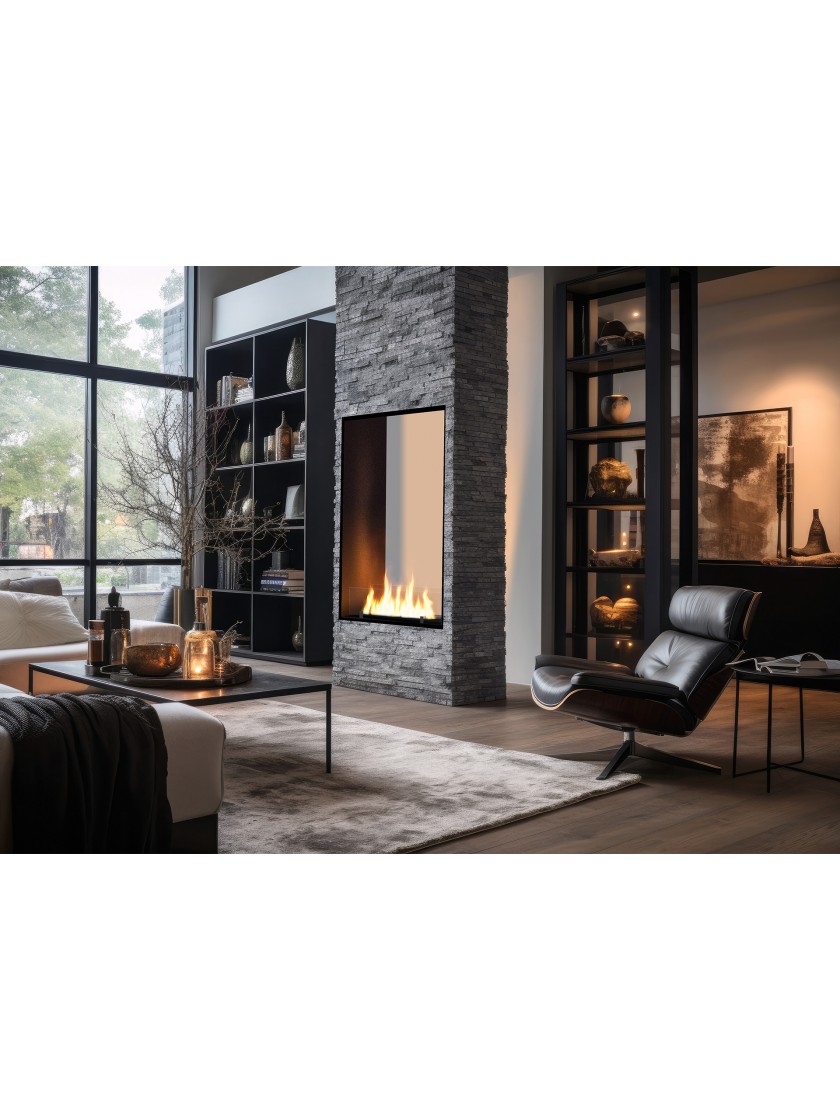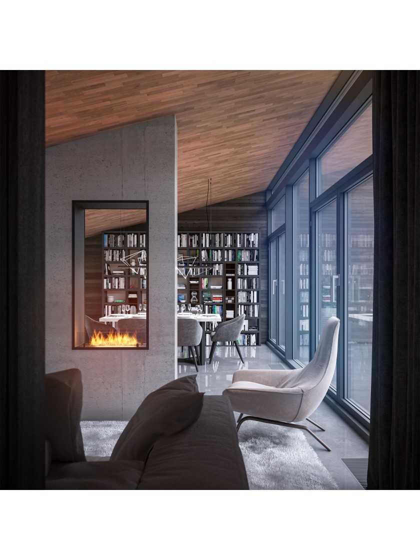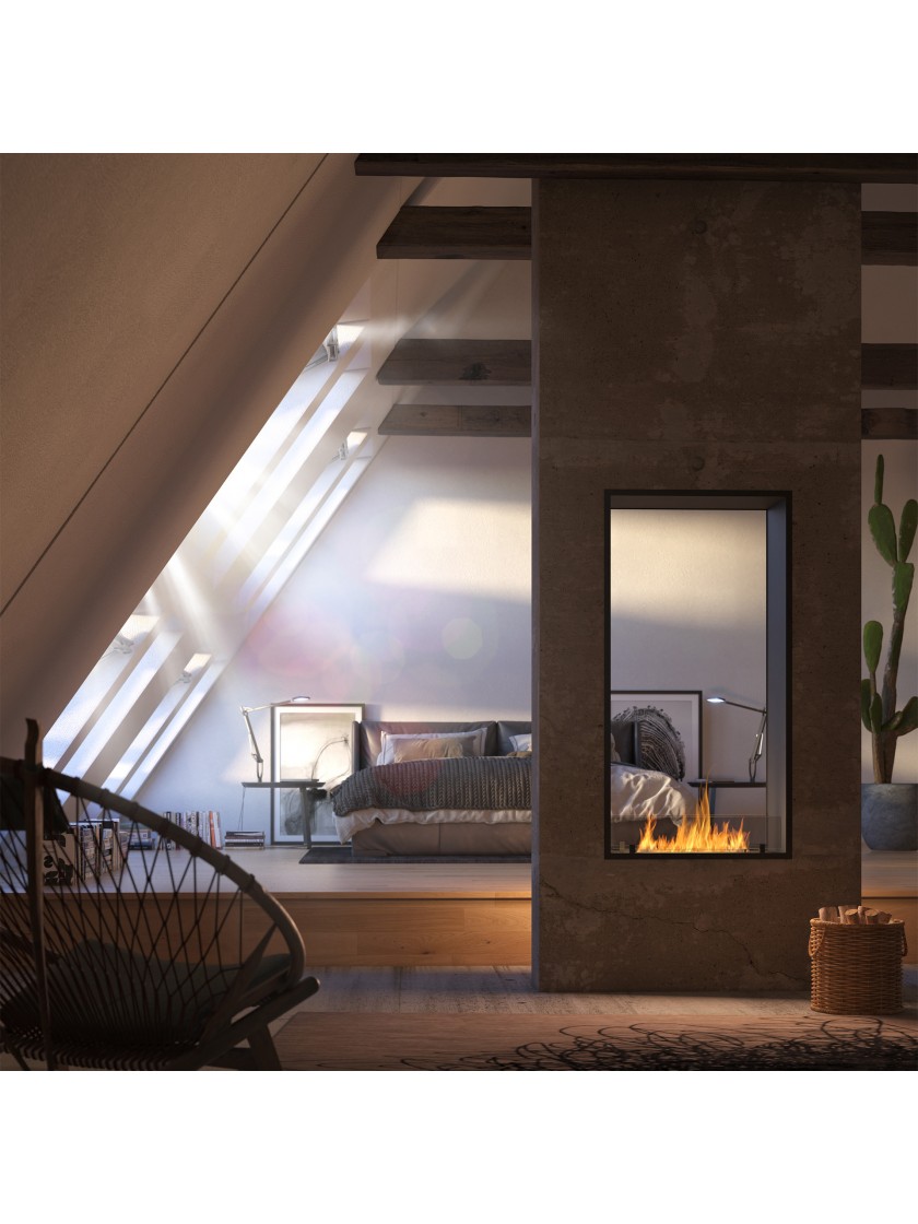 Модель 2 Side 1400 SLIM/vert призначена для встановлення в стіні між двома кімнатами. Біокамін має власну систему повітрозабору, що запобігає виникненню тиску під пальником, що призводить до переливання палива.