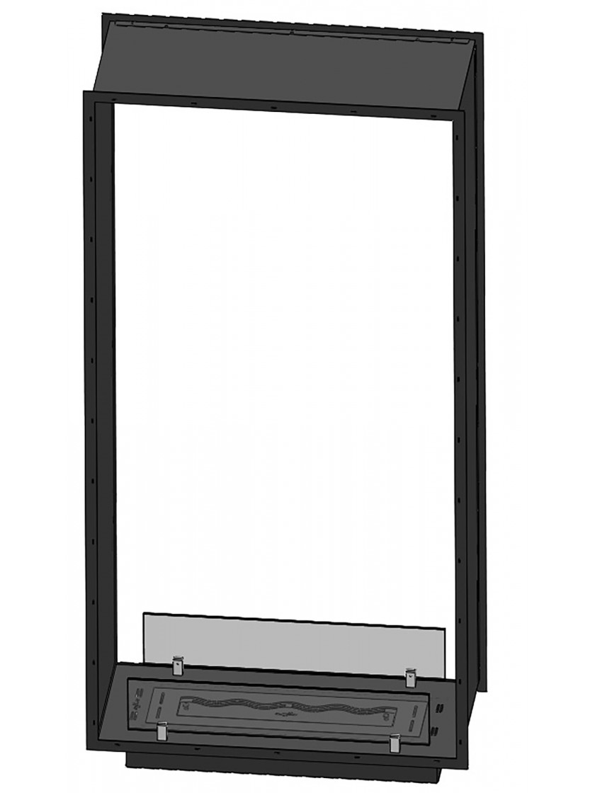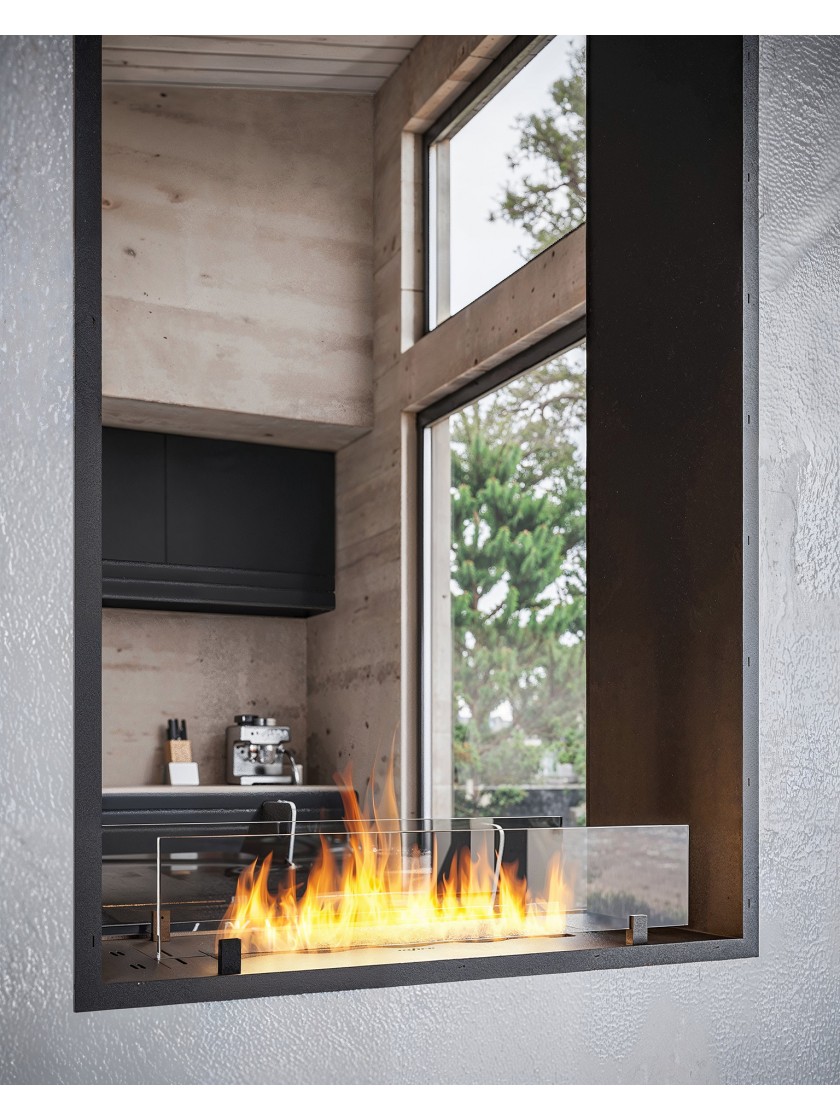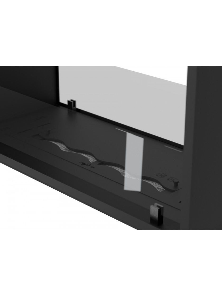 Вставка з керамічного волокна з сіткою підвищує безпеку, продовжує та оптимізує процес горіння. Розсувна планка дозволяє регулювати розмір полум'я і безпечно гасити камін, а форма хвилі створює додатковий 3D ефект. Також пальник має систему вентиляції, яка запобігає створенню тиску під пальником у разі переповнення палива. Додатковий резервуар під пальником гарантує більшу безпеку в разі витоку палива за межі пальника.