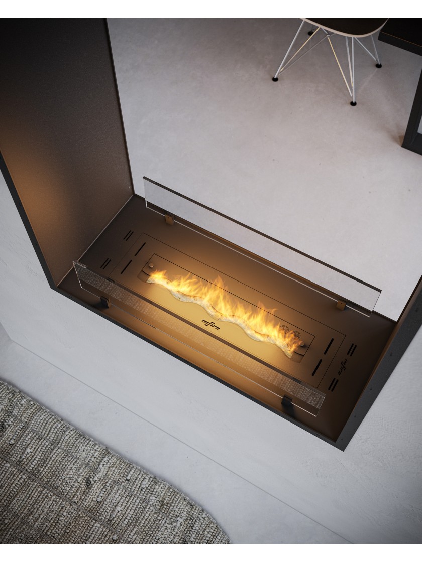 Infire, тобто камін на екологічному рідкому паливі, завдяки якому ми можемо насолоджуватися справжнім вогнем у квартирах, ресторанах, готелях та практично всіх інших інтер’єрах, оскільки таке рішення не вимагає димоходу або інші системи вентиляції. Наші каміни можна встановити де завгодно: на стіну, на підлогу або, наприклад, на терасі.