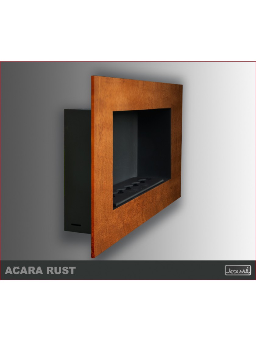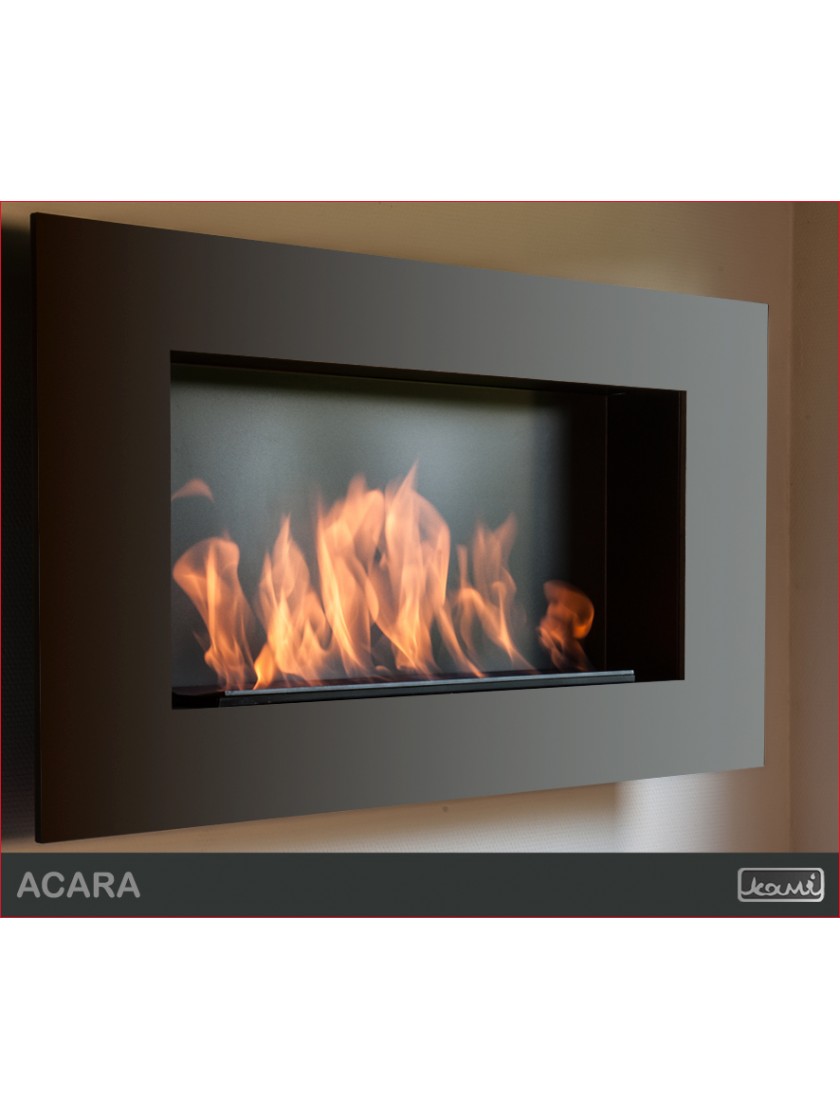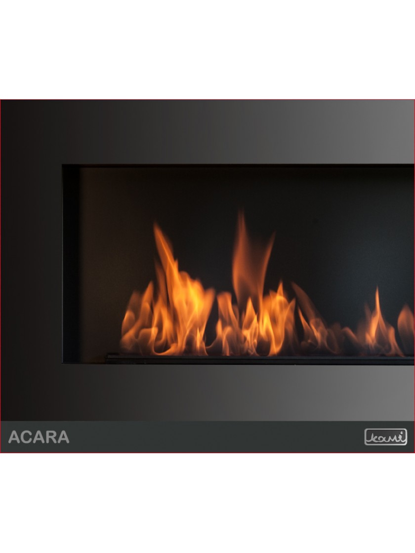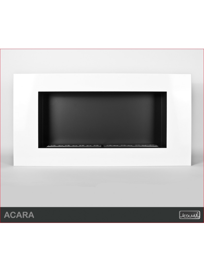 Вбудований біокамін ACARA також можна використовувати як   настінний (підвісний) біокамін. Його розміри (більше 120 см в ширину) дозволяють оздобити велику поверхню стіни. Характерною особливістю даної моделі біокаміна є можливість установки різних типів пальників - в стандартній комплектації є 2 пальника 160 / 370 типу  WAVE ЛІНІЯ (чорні  або   нержавіючі), які можна замінити конфоркою 160 / 500 або 160 / 650. Конструкція  біокаміна  виготовлена ​​з листової сталі товщиною 1,5 мм  з порошковим фарбуванням, що чудово виглядатиме як у великій кватирі, так і у вітальні в окремому будинку, як і в звичайному кабінеті чи ресторані.