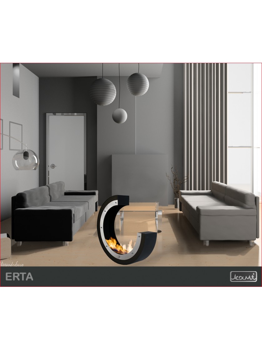 Erta 3/4 — це біокамін , розроблений для людей, які люблять стоячі декорації у своїх оселях. Виготовляється з високоякісної сталі. Мінімалізм цієї моделі підкреслюється використанням круглої форми.Навіть найбільший скептик не зможе встояти перед чарівністю моделі з додаванням колод, які додатково урізноманітнюють ефект горіння.