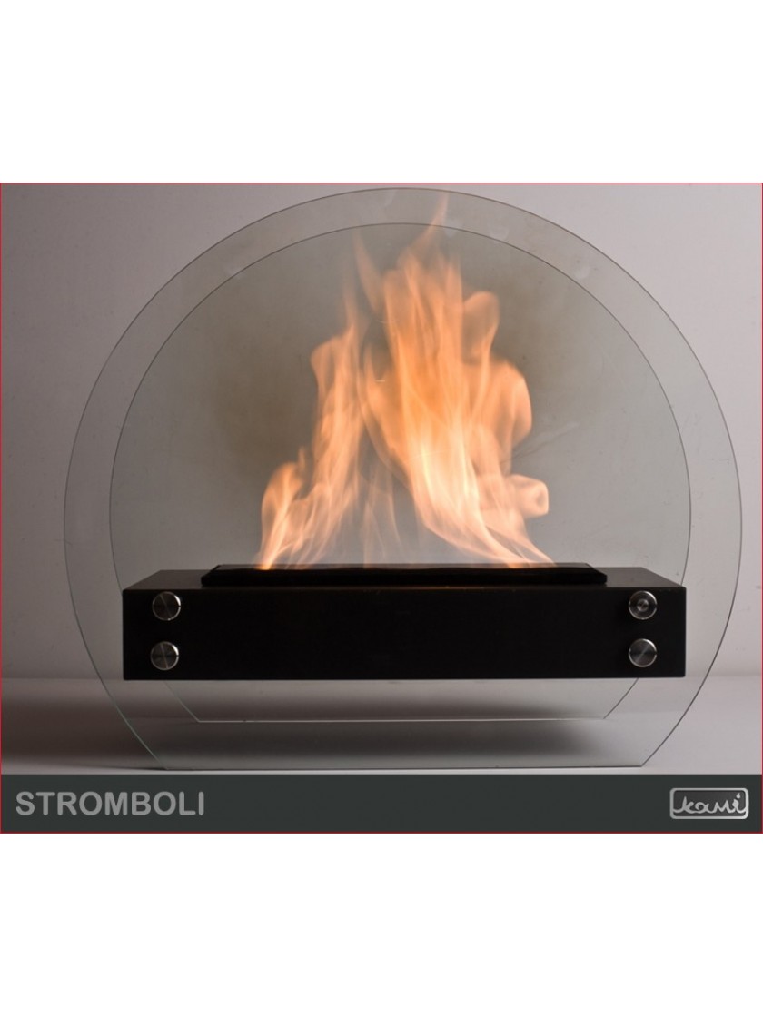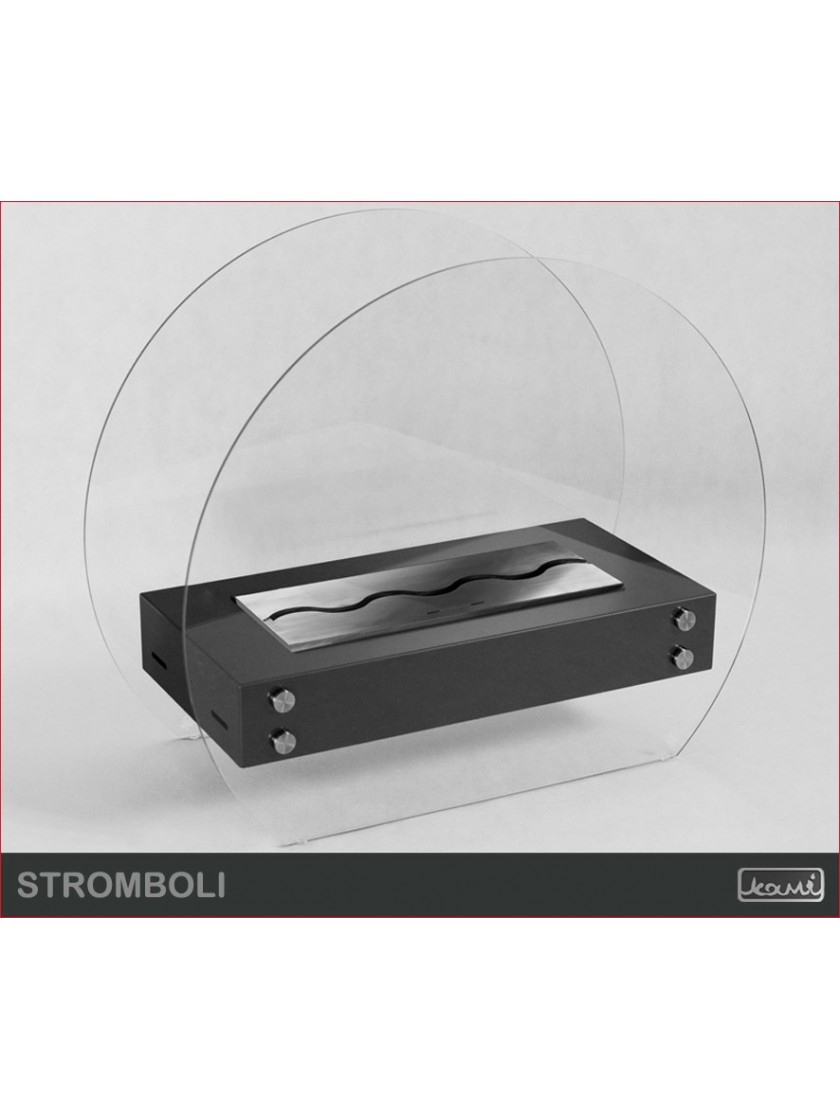 Біокамін Stromboli 60 - це модель, створена для людей, які цінують універсальність. Паралельні скляні стінки, «прорізані» внизу, дозволяють стійко встановити цю модель на будь-якій рівній поверхні. Крім того, загартоване скло забезпечує захист від надлишку тепла, не закриваючи сам вогонь.
