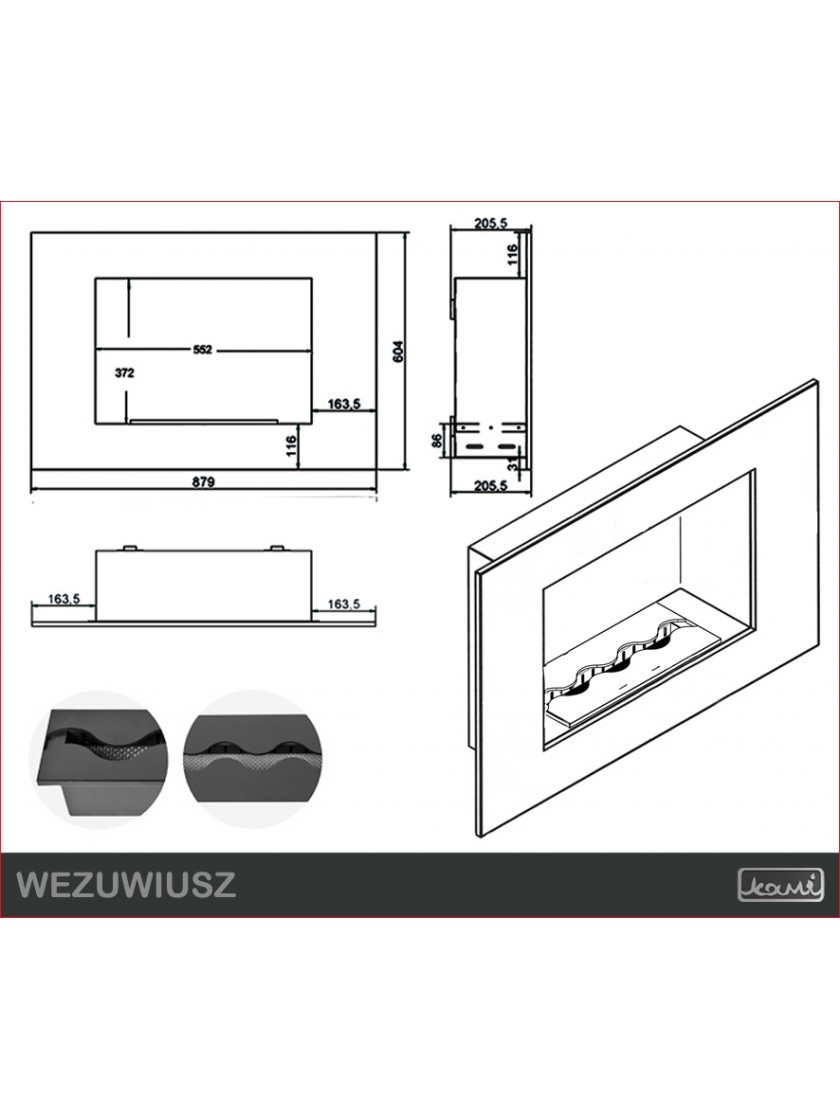 Біокамін WESUWIUS - це вишукана та оригінальна модель настінного каміна на біоетанолі з можливістю монтажу.