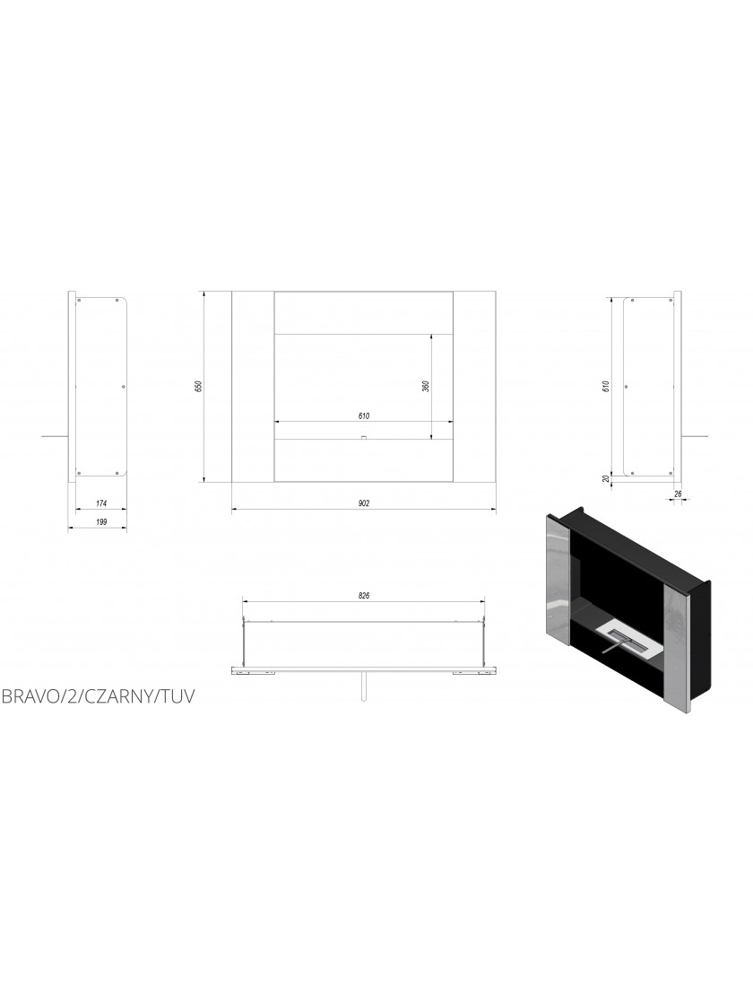 Біокамін Kratki Bravo 2 чорний з сертифікатом TUV