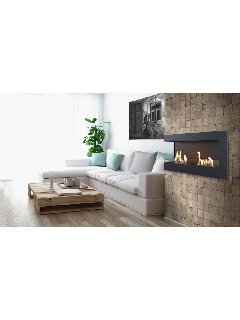 Відкритий з лівої сторони горизонтальний, кутовий біокамін - ідеальне рішення для установки в ніші.