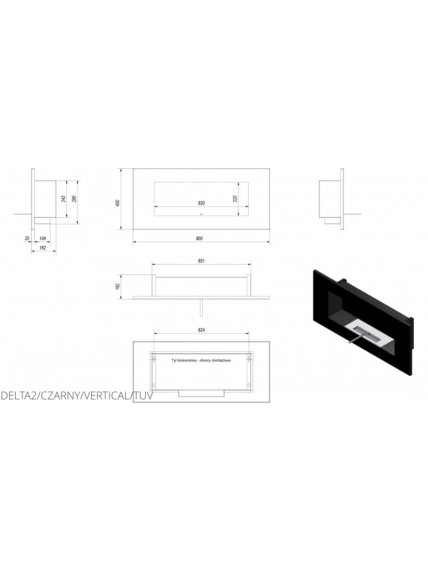 Біокамін Kratki DELTA 2 чорний VERTICAL з сертифікатом TUV