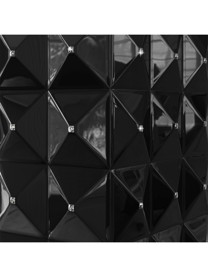 EGZUL привертає увагу своїм корпусом - пірамідами з білого МДФ, прикрашеними оригінальними кристалами Сваровскі.