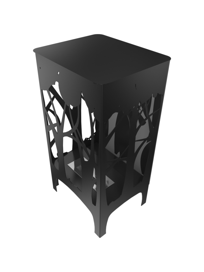 Окремо стоячий біокамін простої, елегантної форми. У сприятливих погодних умовах це може бути прикрасою тераси або саду.