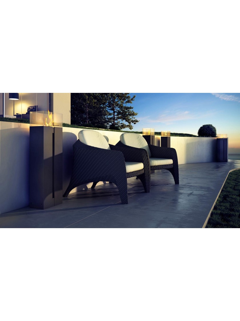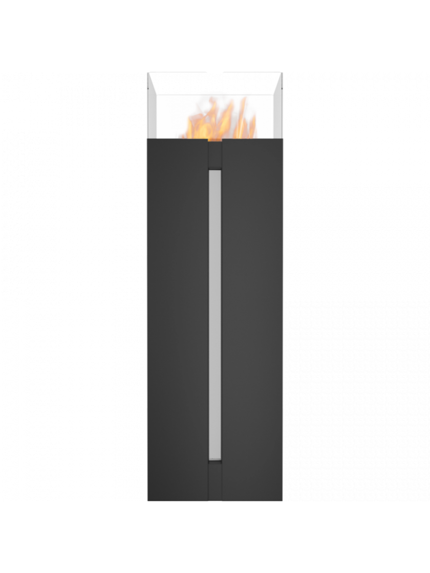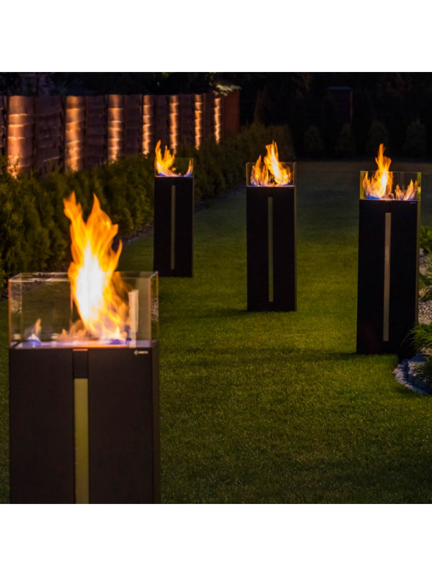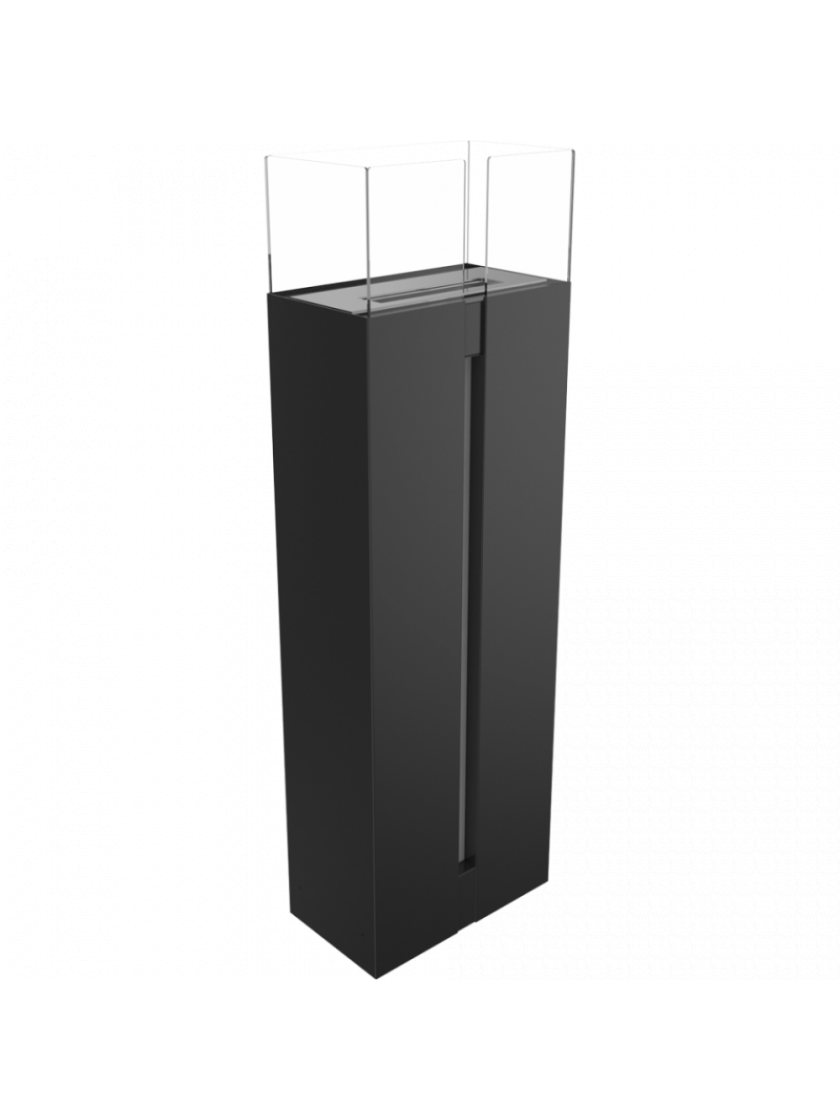 Окремо стоячий біокамін стабільної конструкції. Скляні панелі, розташовані з 4 сторін контейнера з вогнем, забезпечують додатковий захист дітей та домашніх тварин.