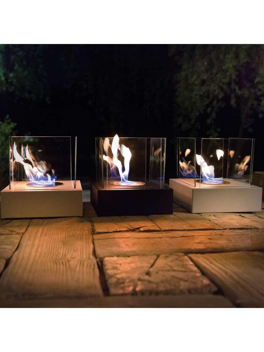 Стабільна конструкція і скляні панелі з чотирьох сторін контейнера з вогнем роблять біокамін безпечним у використанні. Чудово працює як всередині будинку, так і ззовні.