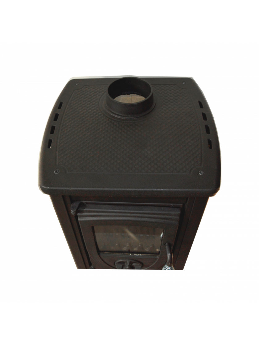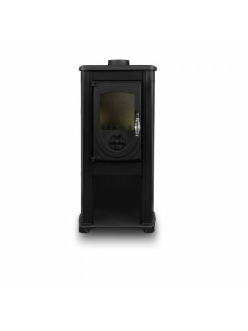 Сталева піч-камін з чавунними елементами Nordflam FOKUS. Матеріал виробництва дозволяє тривалий час після нагріву, розподіляти тепло. Також завдяки вишуканому дизайну, не потребує облицювальних матеріалів.
