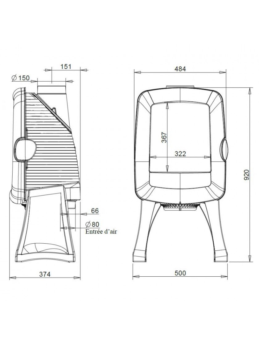 - вихід димових газів може бути підключенний до димоходу зверху або ззаду печі;