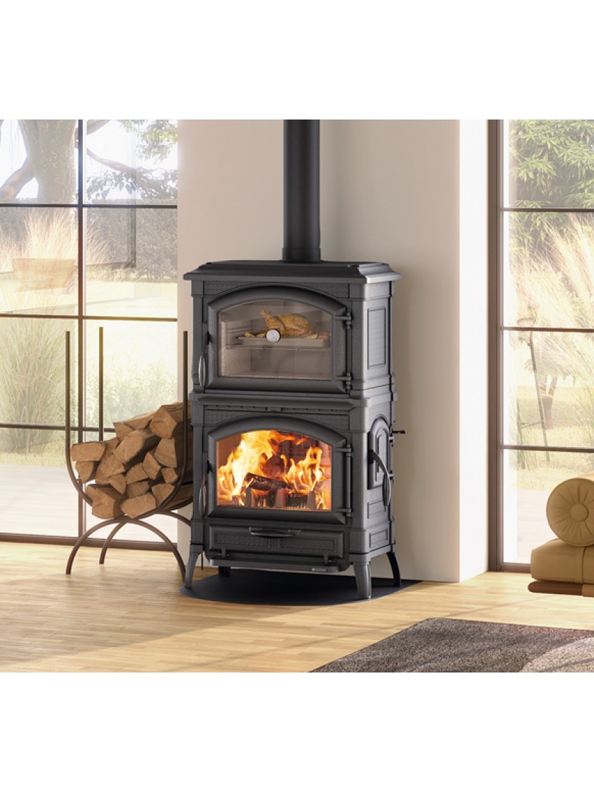 ISOTTA Forno – це опалювально-варильна буржуйка італійського виробництва. Дизайн печі виконаний у чорному класичному кольорі, зверху конструкції є духовка для приготування та розігріву їжі.