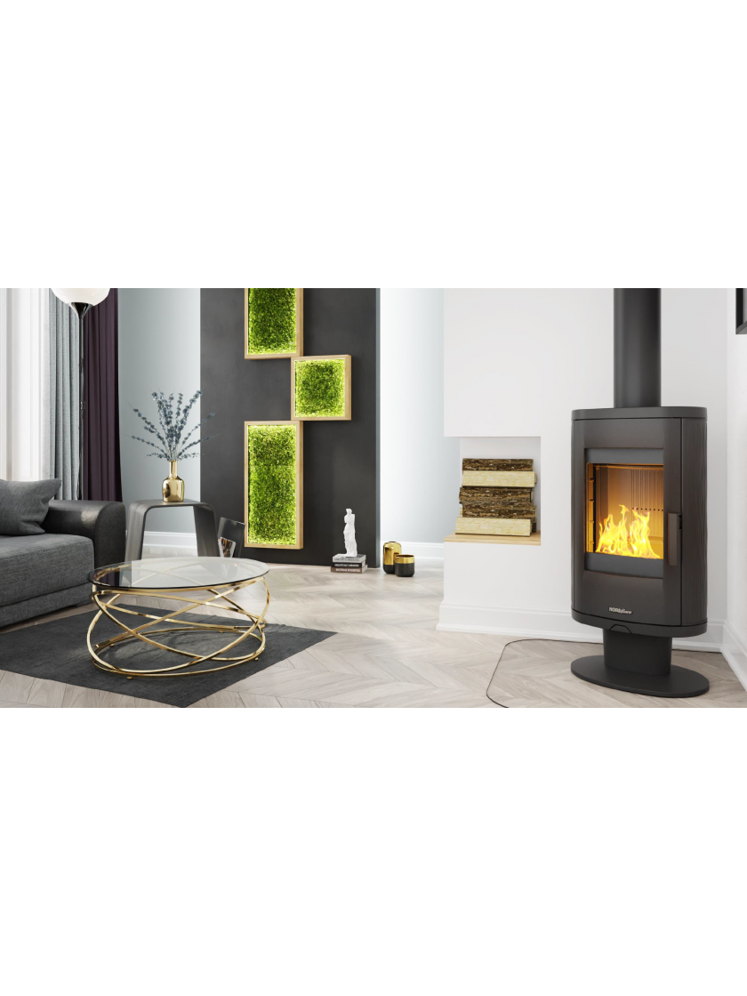 Чавунна піч-камін Nordflam AUGUSTA. Матеріал виробництва дозволяє тривалий час після нагріву, розподіляти тепло. Також завдяки вишуканому дизайну, не потребує облицювальних матеріалів.