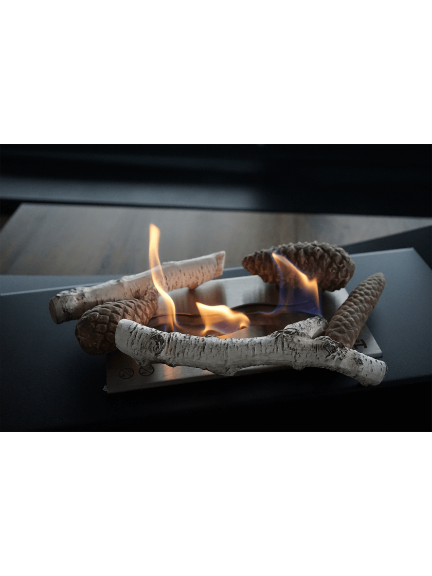 Пропозиція HITZE включає кілька різних візерунків , що імітують різні види деревини. У набір входить набір декоративних колод, що складається з 5 керамічних елементів, що імітують справжнє дерево. Користувач отримує вже готовий набір, для якого потрібно лише розмістити дрова на пальник біокаміна. Ці види декоративних елементів створюють чудові візуальні враження, імітуючи справжнє дерево. Керамічні поліна не зношуються і можуть використовуватися протягом усього терміну експлуатації біокаміна.