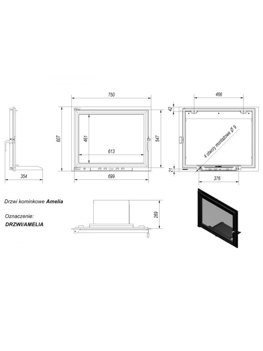 Чавунні камінні дверцята прямої форми для топок AMELIA і FELIX.