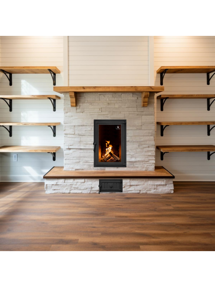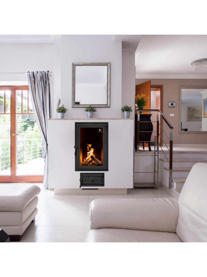 • Високоякісний чавун. Чавунні дверцята швидко нагріваються і довго зберігають тепло після згасання вогню, що робить їх ефективнішими порівняно зі сталевими аналогами.