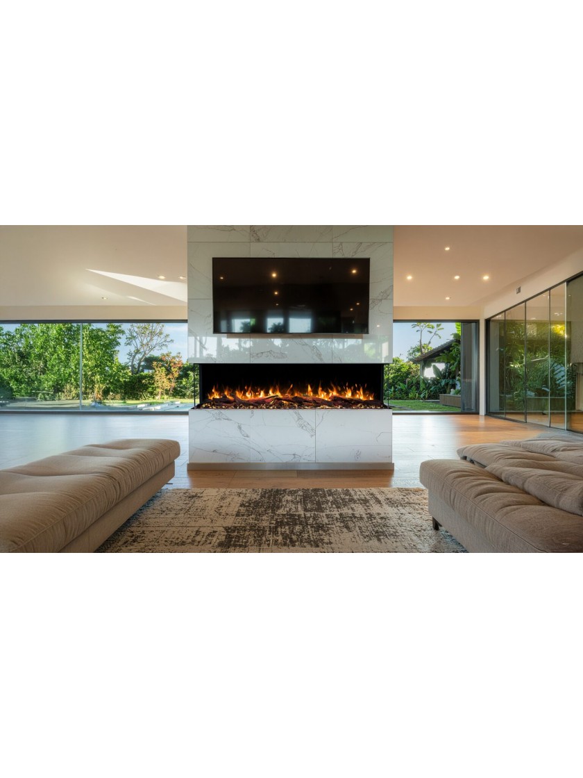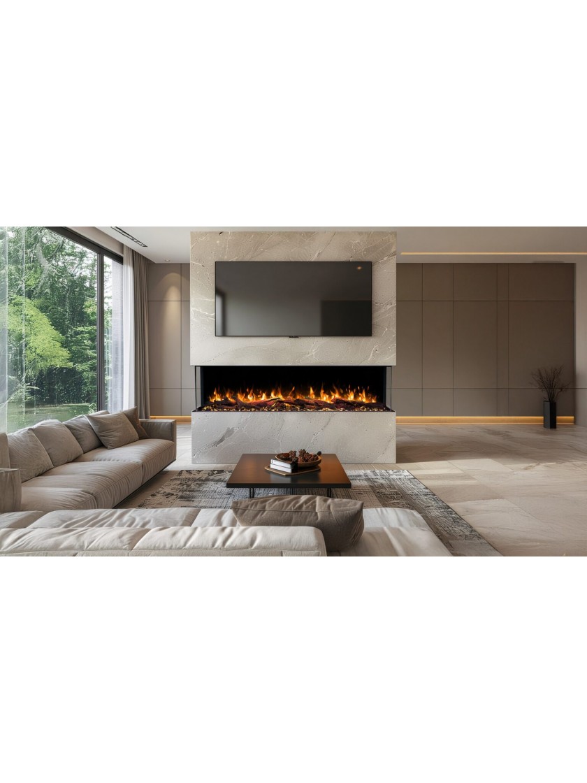 - Реалістичні поліна та кристали надають топці природного вигляду, а загартоване скло забезпечує безпеку.