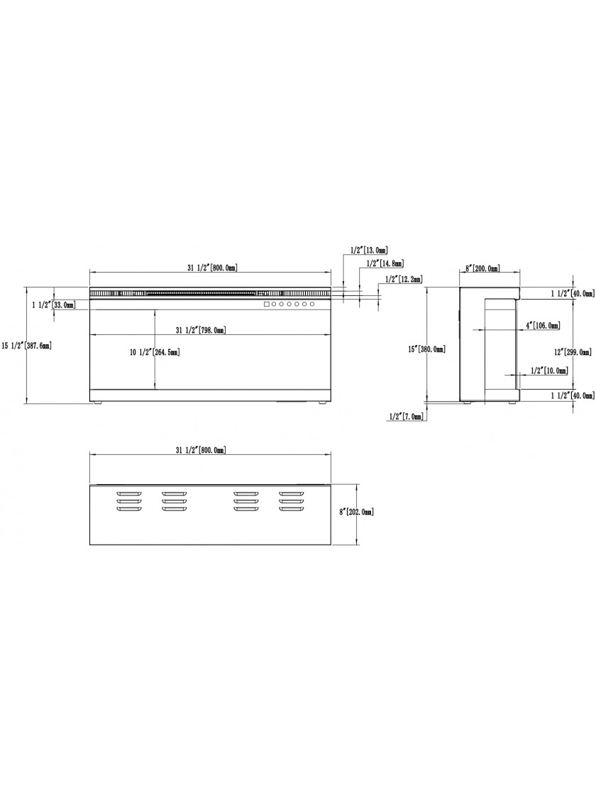 Камін доступний в різних розмірах: 80, 100, 120, 140, 160, 180 см.