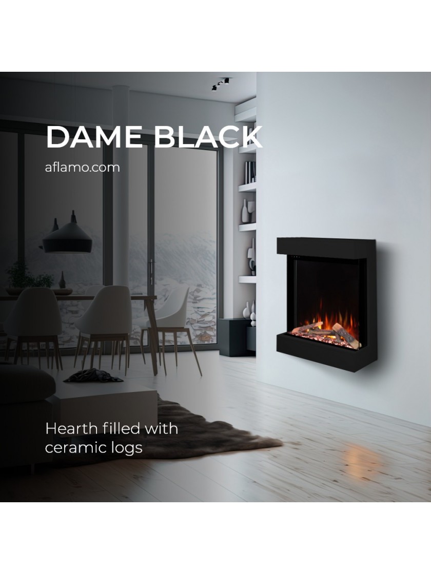 Електрокамін Aflamo DAME Чорний - це тристоронній вертикальний настінний камін.