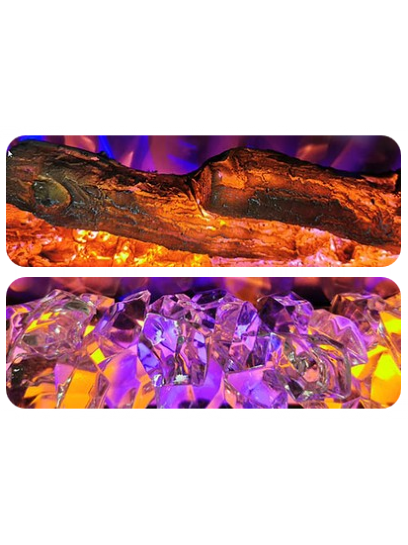 - Топка каміна заповнена керамічними полінами. Вони виглядають як справжні дрова у вогні.