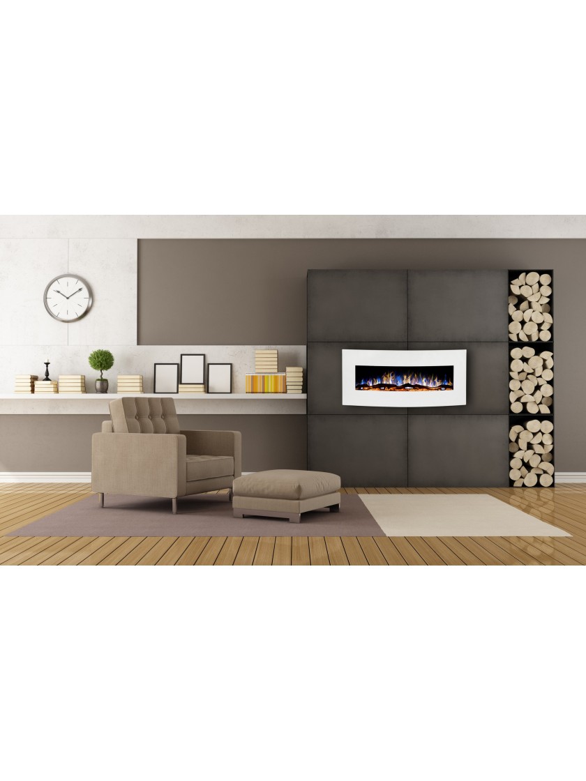 Електрокамін Aflamo MALIBU 48 Білий - це стильне, сучасне рішення для тих, хто цінує комфорт, безпеку та красу живого полум’я. Його витончений дизайн з опуклою рамкою чудово доповнить будь-який інтер’єр, а невелика глибина - лише 16 см - дозволяє встановити камін навіть у компактних приміщеннях.