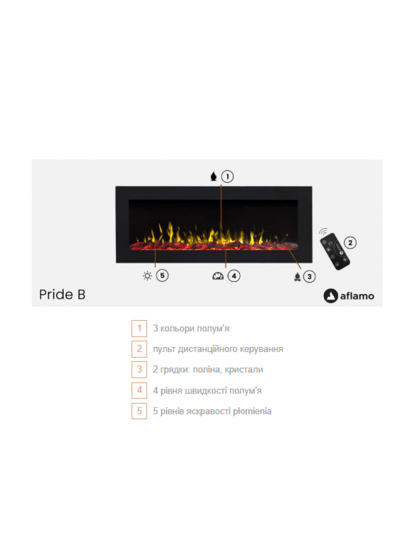 Теги: Електрокамін Aflamo PRIDE B128,Pride B128,Настінні електрокаміни