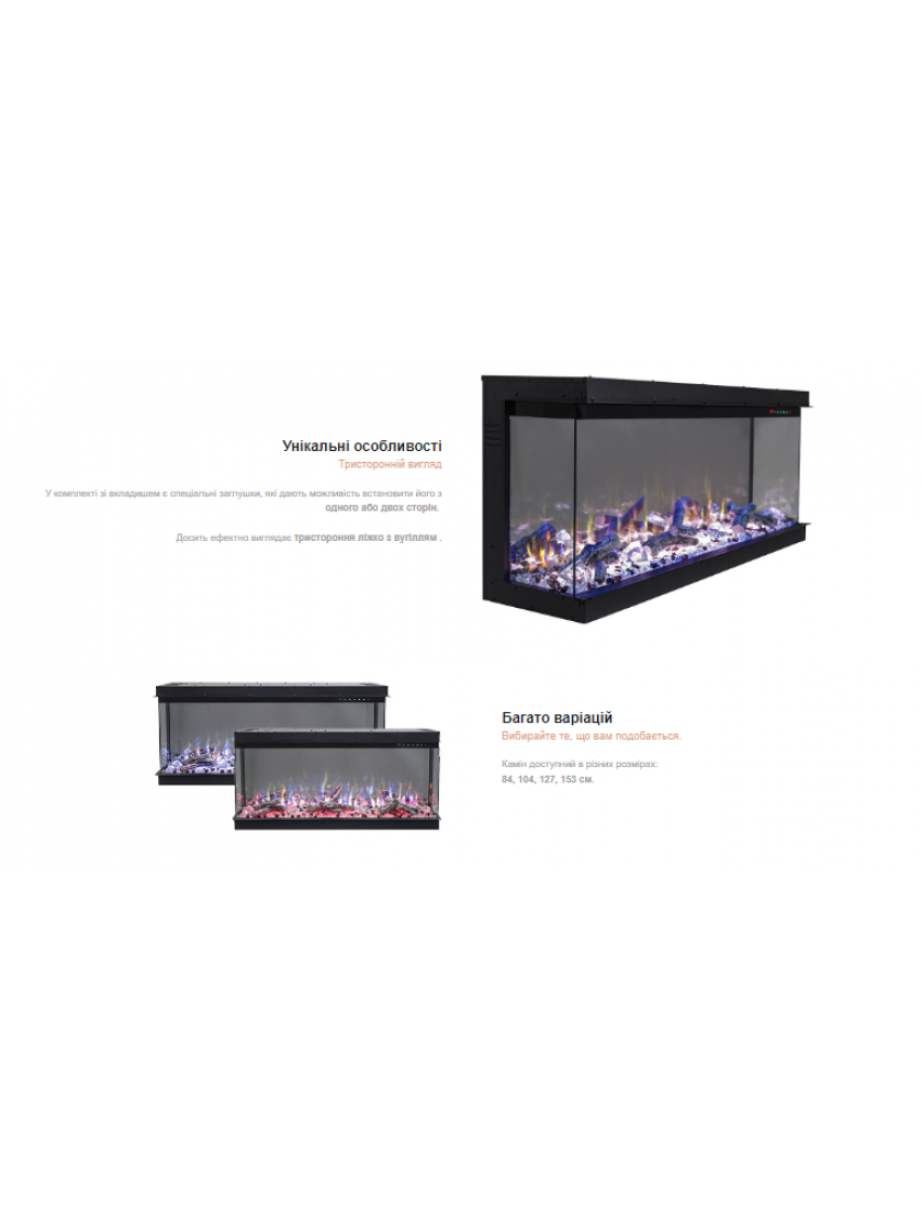 Камін не потребує вентиляції, не виділяє диму чи запахів, не вимагає провітрювання приміщення та дозволяє підтримувати комфортну температуру без втрат енергії.