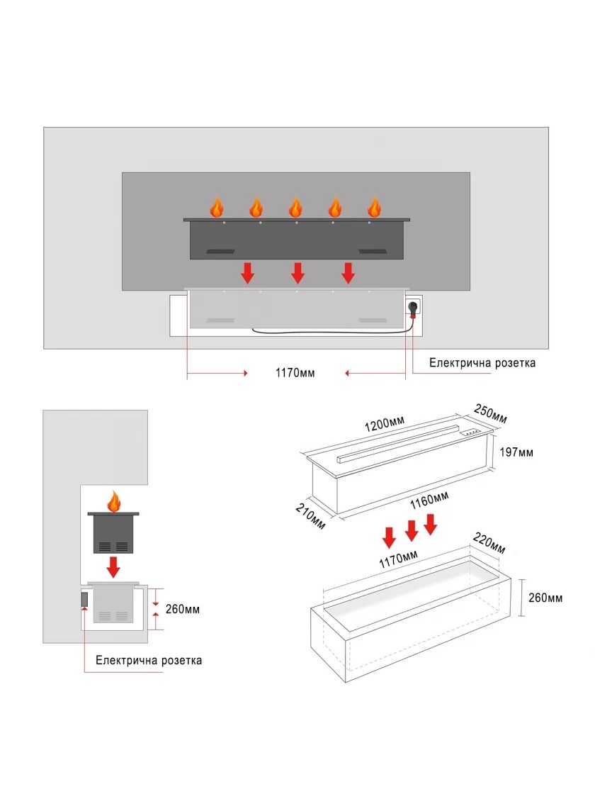 Монтажні габарити ВхШхГ: 197 х 1160 х 210 мм.