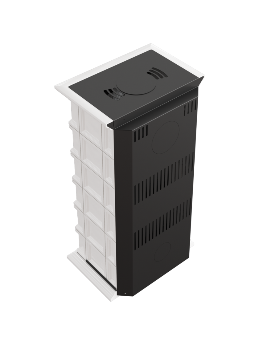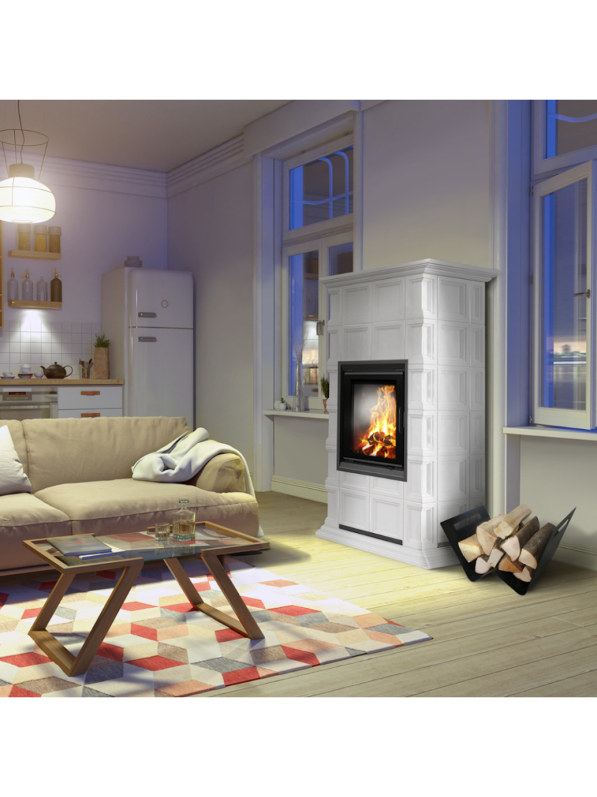 Своїм унікальним дизайном кахлі з полиском великого формату нагадують про олдскульну моду. Корпус з кахлів впливає на продовження часу віддачі тепла, що становить додаткове джерело опалення після погашення камери згоряння.