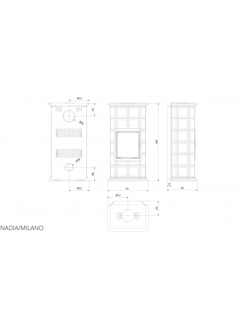 Корпус і передня стінка витримують дію високих температур завдяки використовуваному матеріалу - високогатунковій сталі. Це забезпечує стабільність цілої конструкції. Nadia викладена жаростійкою керамікою, яка витримує температуру до 660° С. Пропоноване нами скло має сертифікат якості і безпеки.