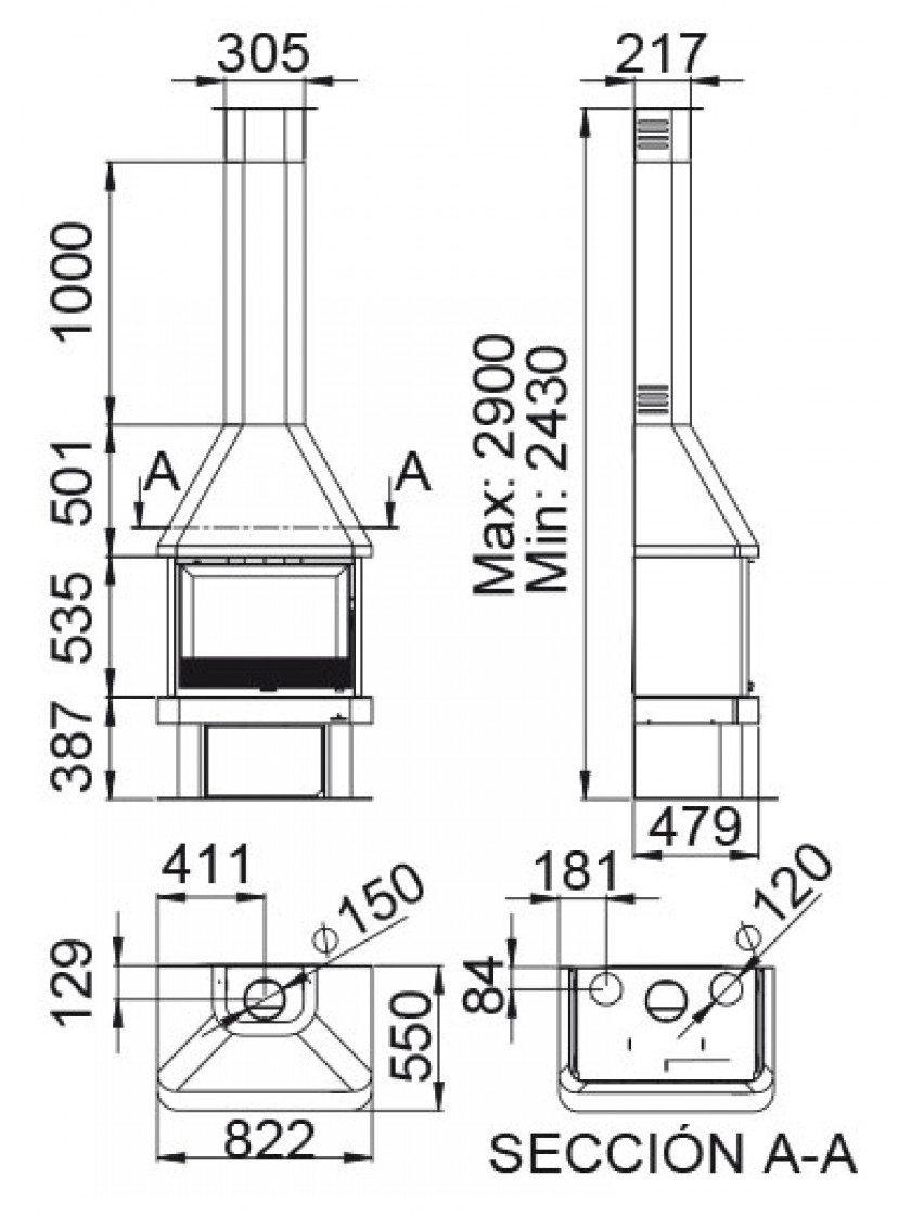 - Повітряний канал (діаметр і номер вихідної труби): 2x120.