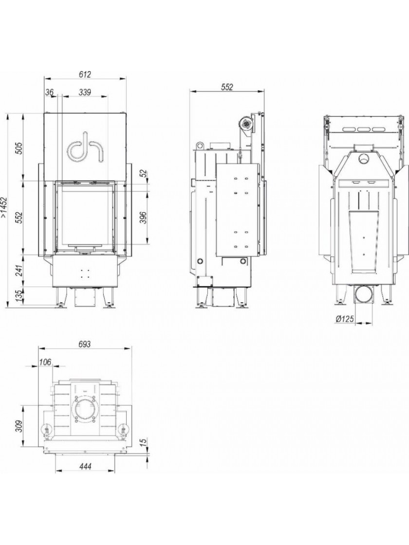 Ця камінна топка підійде для енергоощадних будинків, особливо з рекуперацією, де тепле повітря може бути розподілене за допомогою системи DGP.