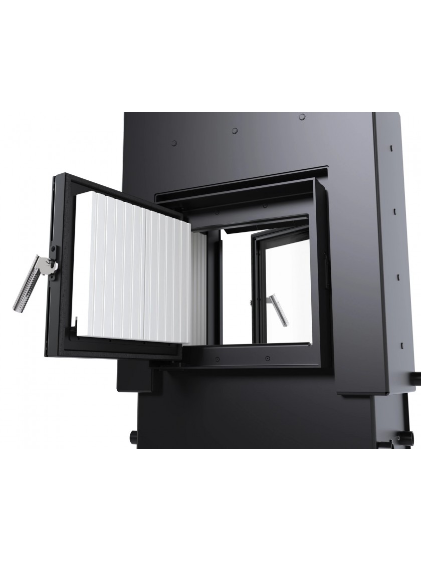 - Заднє завантаження дозволяє чистити камін і додавати дрова до топки з іншої кімнати (наприклад, з котельні).