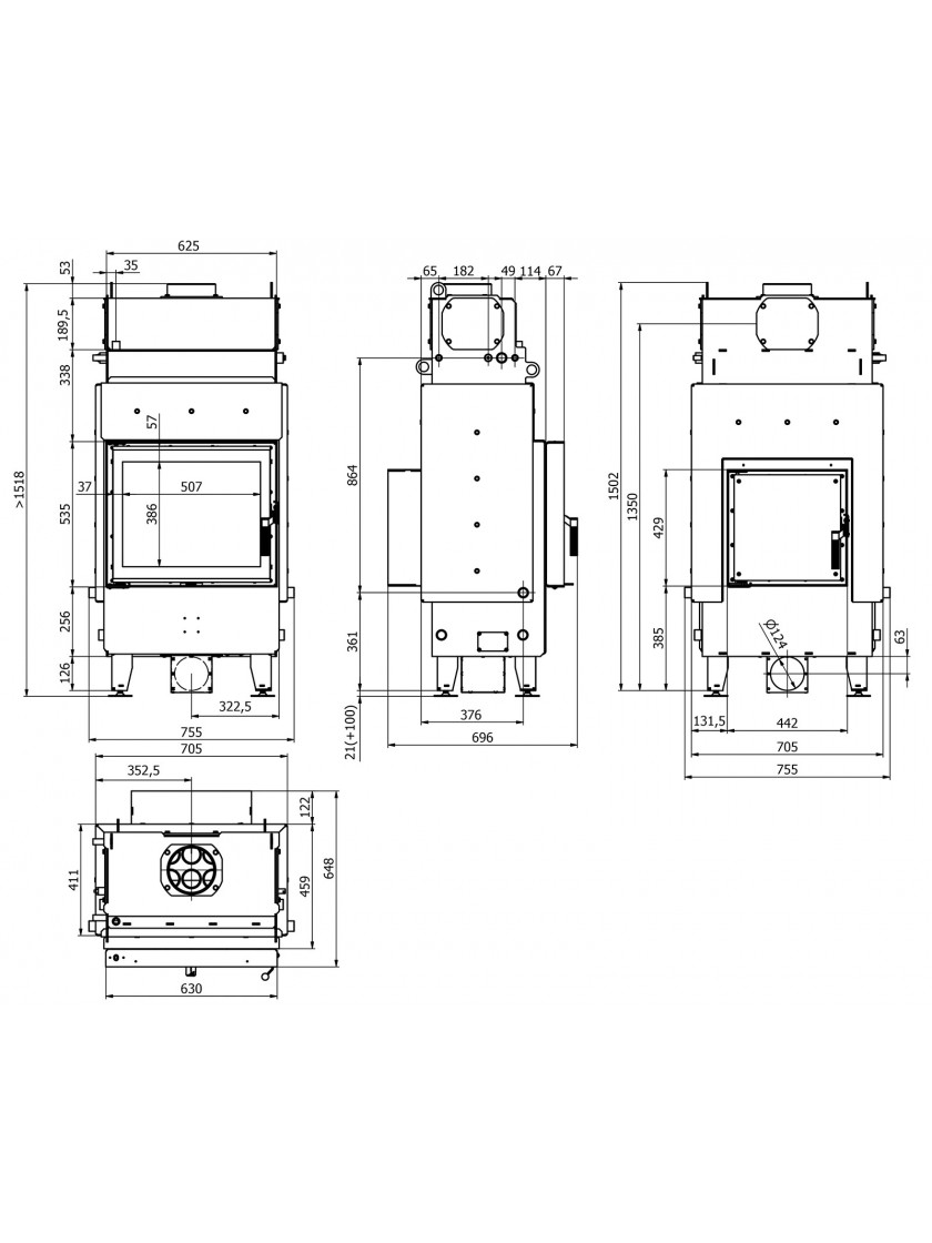 - Заднє завантаження дозволяє чистити камін і додавати дрова до топки з іншої кімнати (наприклад, з котельні).