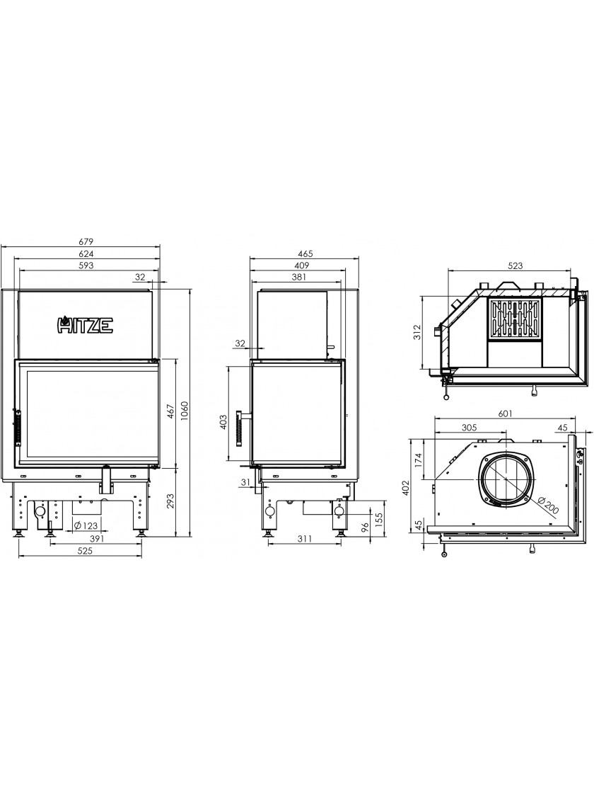 Камінна топка Hitze ALBERO AL11R.H-DBI (Cкло декор+додаткове внутрішнє скло цільногнуте)