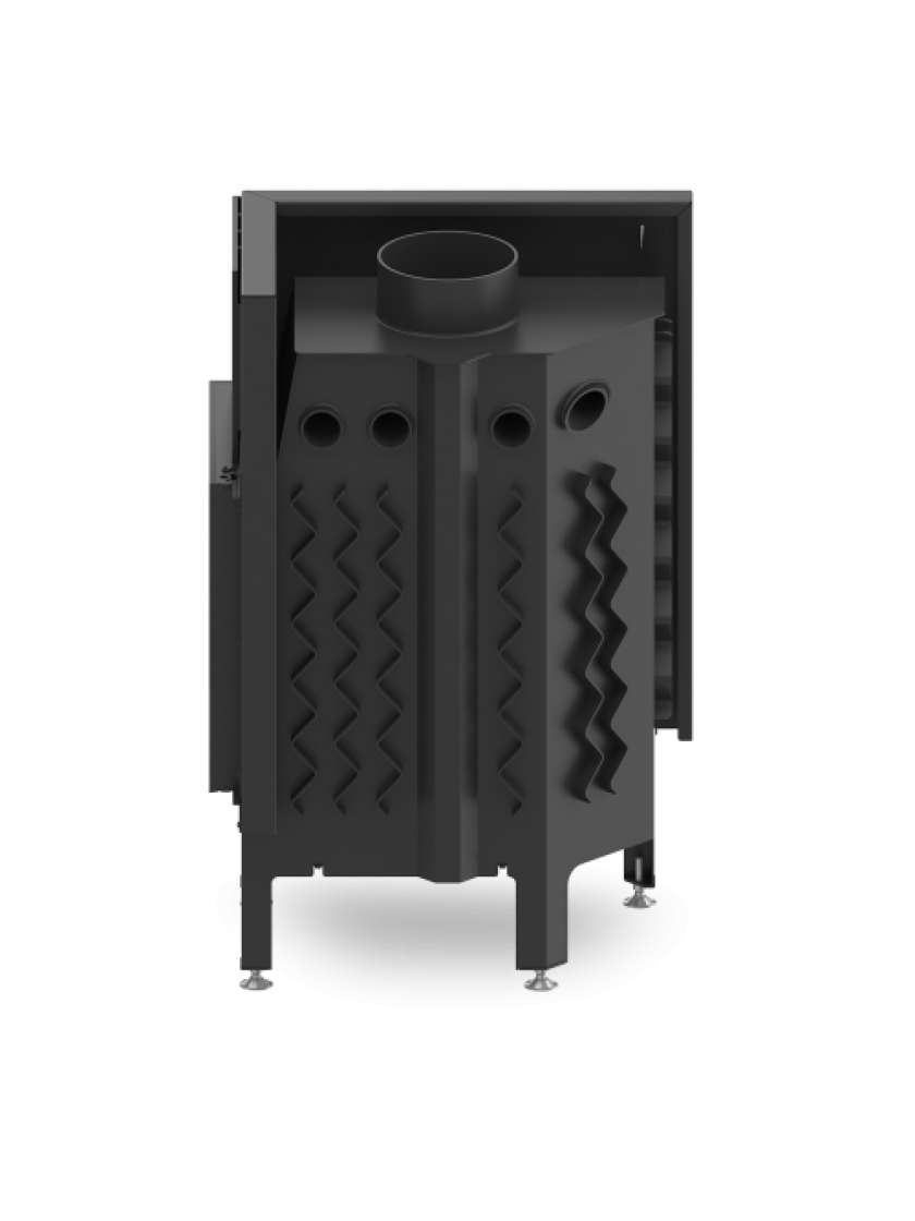 - Задня стінка у камері згоряння обладнана системою подвійного допалу чадних газів, що збільшує потужність пристрою.