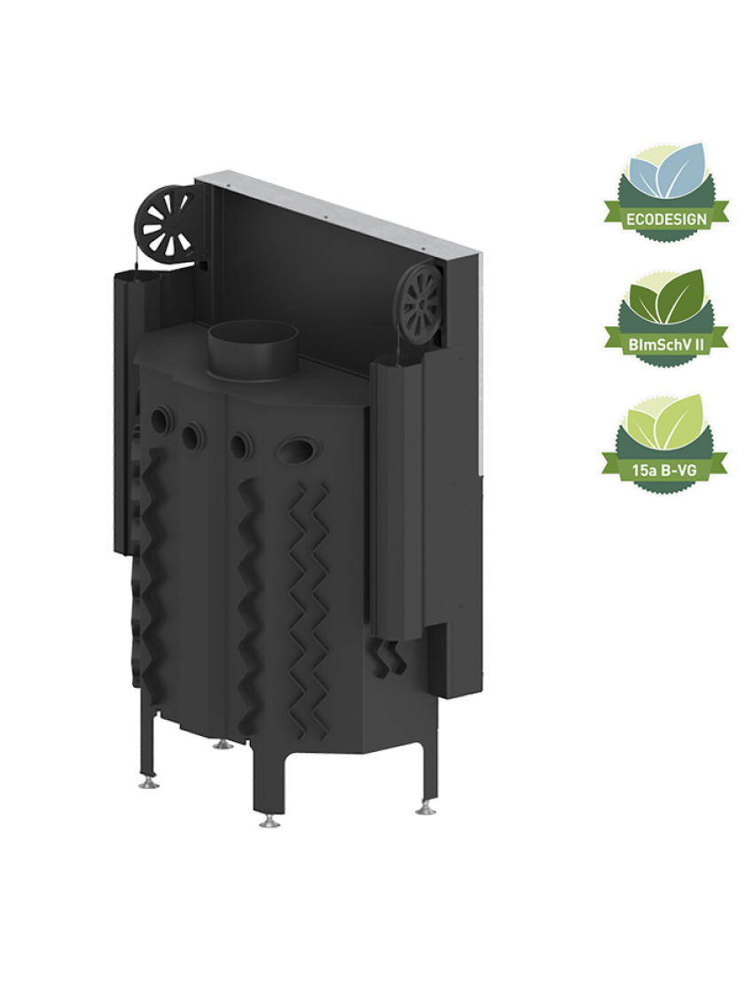 4. Подача повітря у топку здійснюється з вулиці через подвійний повітрозабірник, який не тільки дозволить керувати процесом горіння, а і створить повітряну завісу, яка очищатиме скло.