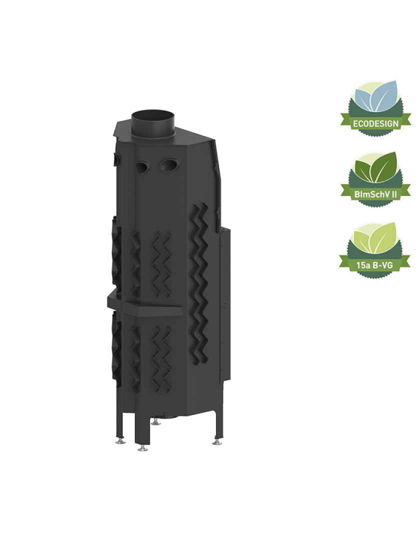 - Задня стінка у камері згорання обладнана системою подвійного допалу чадних газів, що збільшує потужність пристрою і коефіцієнт корисної дії.