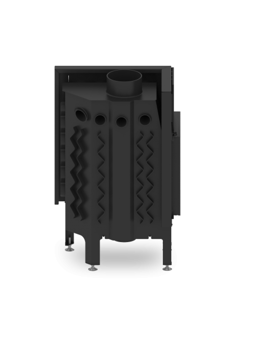 - Задня стінка у камері згорання обладнана системою подвійного допалу чадних газів, що збільшує потужність пристрою і коефіцієнт корисної дії.