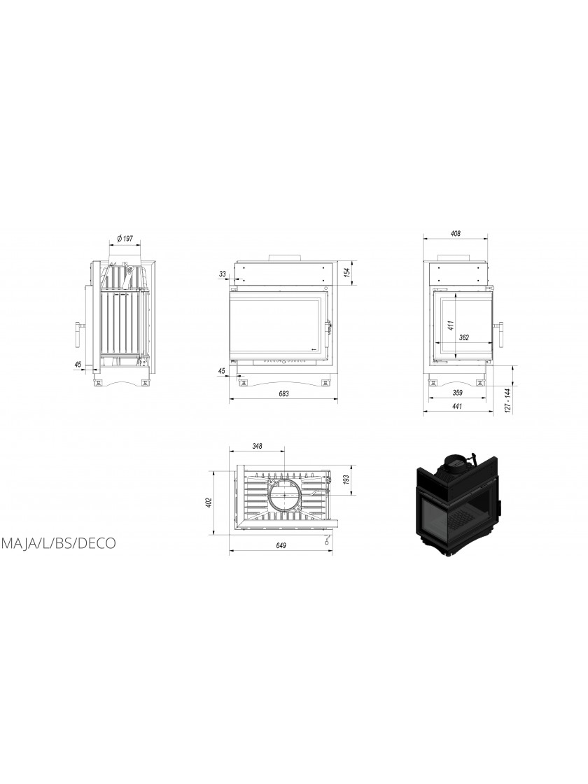 Класична передня частина топки викладена жаростійкою керамікою, яка витримує температуру до 660°C.