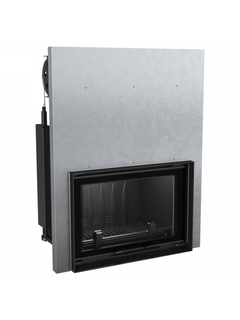 Дверцята топки працюють у системі lift up - скляна панель піднімається догори. Ця система була збудована, опираючись на противагу - два блоки (по обидвох сторонах дверцят) зі сталевою рейкою працюють у напрямних на двох несучих роликах, завдяки чому вага дверцят рівномірно розподіляється. Вони рухаються вздовж на вогнетривких роликах, встановлених у дверній рамі, що гарантує їх легке, тихе та безперебійне функціонування. Рух дверцят відбувається на відстані пару міліметрів від корпусу, що запобігає ушкодженню герметизації. Дверцята, що зачиняються, з великою силою занурюються у дверну раму, завдяки чому камера згоряння є повністю герметичною.