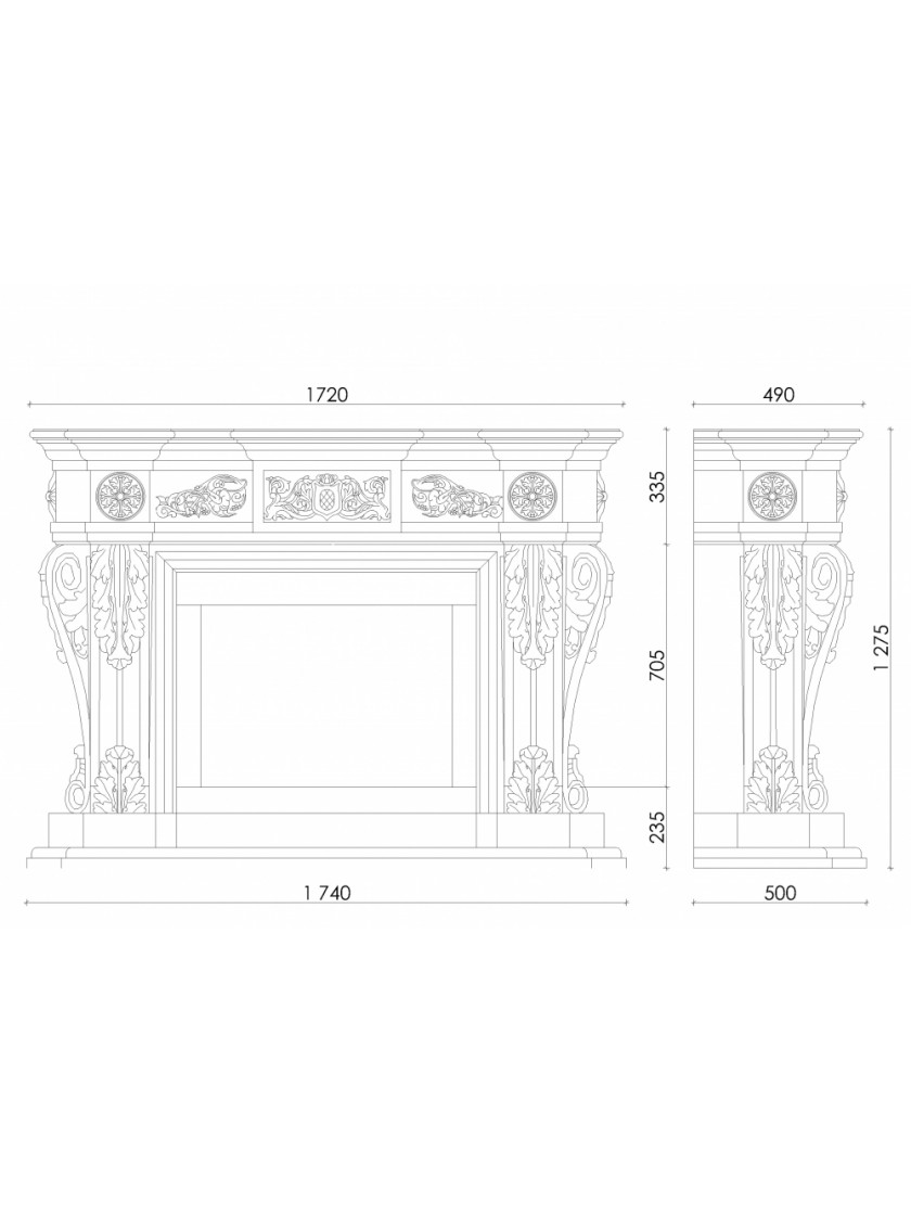 Виробництво під розміри будь-яких топок, можлива зміна форми та розмірів. Вартість порталу залежить від обраної категорії мармуру. Камінь може відрізнятись відтінком і текстурою.