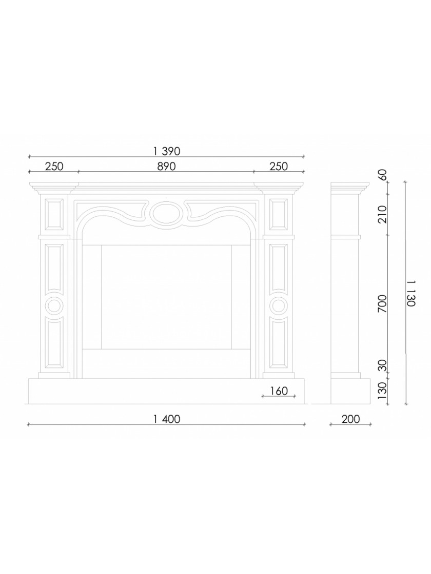 Виробництво під розміри будь-яких топок, можлива зміна форми та розмірів. Вартість порталу залежить від обраної категорії мармуру. Камінь може відрізнятись відтінком і текстурою.