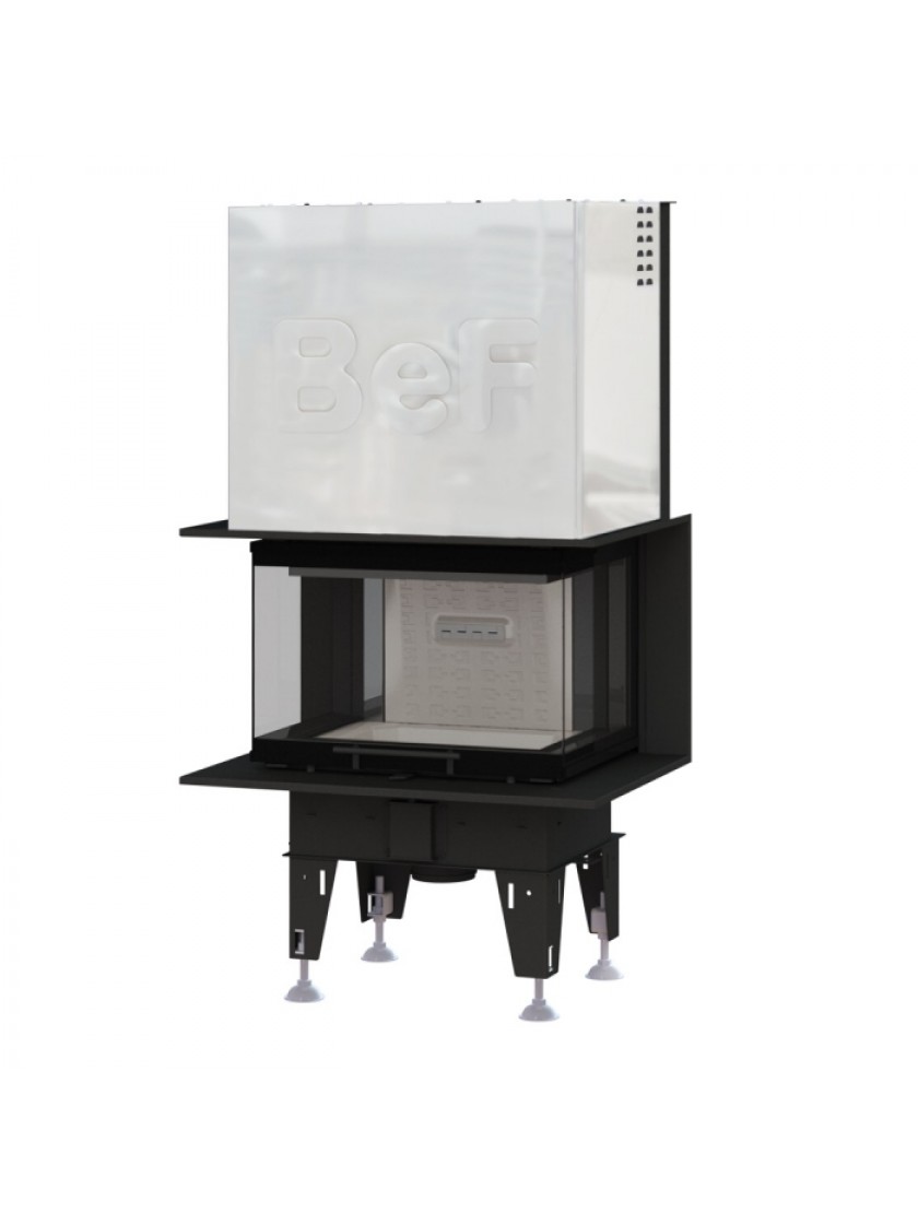 Камінна топка BeF Home Therm V 6 C - це повітряна камінна топка із тристороннім склом, яка має новий привабливий зовнішній вигляд та сучасну інноваційну систему розподілу тепла від чеського виробника. Топка оснащена регулюванням подачі первинного та вторинного повітря, а також системою самоочищення скла, завдяки якій скло завжди залишається чистим. Виготовлена із сталі. Камін з бічним відкриттям дверцят, із прямим склом SCHOTT ROBAX 624х400х400 мм, завдяки його надзвичайно низькому тепловому розширенню, скло витримує високі температури. Для підвищення температури всередині топки та покращення якості згоряння палива що підвищує ККД топки, використовується акумулюючі